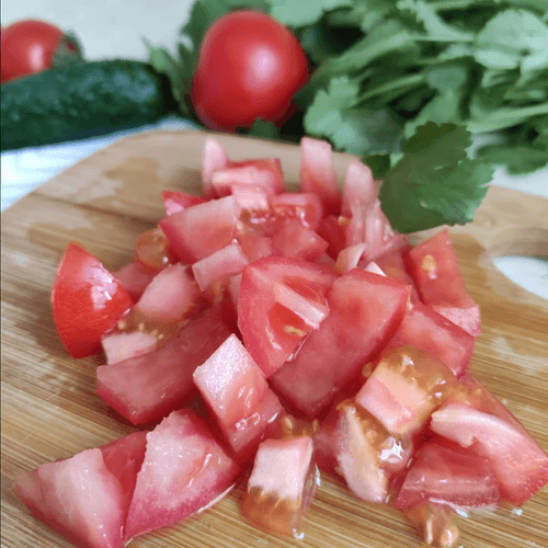 Помидоры разрезать на небольшие кубики или дольки.