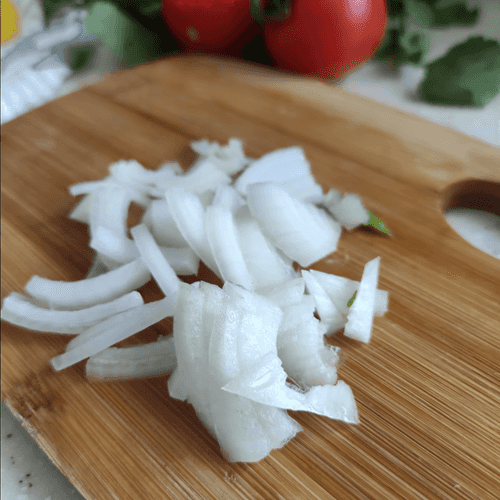 Белый лук нарезать на полукольца.