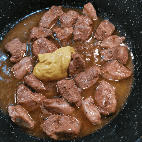Добавить горчицу и перемешать. Через 2 минуты снять с огня и остудить.