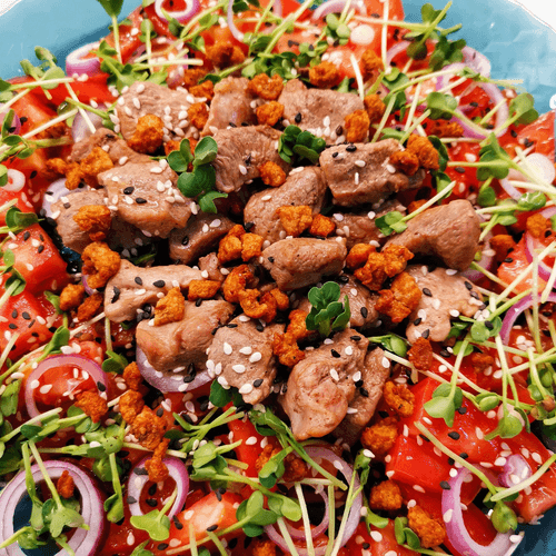 Итальянский салат с уткой — это воплощение изысканности и гармонии вкусов, объединяющее нежное мясо утки с пикантностью соевого соуса и горчицы. Этот рецепт, вдохновленный итальянскими гастрономическими традициями, создаёт идеальный баланс между теплотой жареной утки и свежестью овощей. Хрустящие шкварки добавляют текстурную контрастность, а лимонный сок подчеркивает вкусовую глубину блюда. Такой салат станет великолепным украшением праздничного стола или легким ужином, приносящим гастрономическое наслаждение. Он прекрасно сочетается с белым вином, усиливая оттенки вкуса. Итальянцы любят экспериментировать с ингредиентами, и этот салат — яркий пример того, как простые продукты могут стать настоящим кулинарным шедевром.