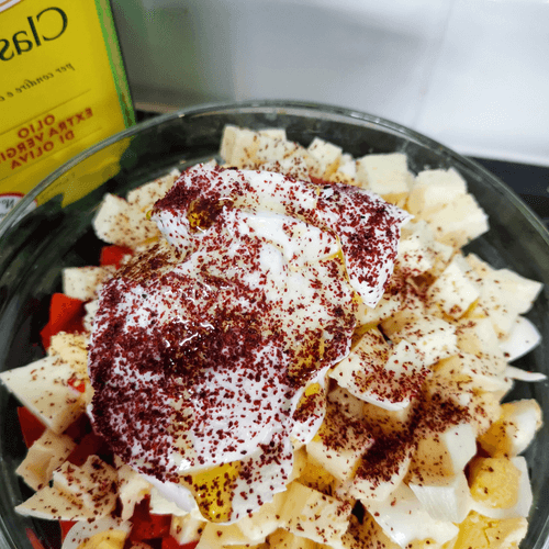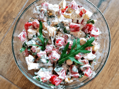 Салат по-армянски — это гармония свежести и ярких вкусов. Его основа — зелень, петрушка, цицмати и рукола, придающая салату пикантность. Сладость помидоров и болгарского перца оттеняется легкой солоноватостью слабосоленого сыра сулугуни. Нежность перепелиных яиц добавляет текстурную насыщенность, а сумах привносит восточную нотку с тонкой кислинкой. Заправка из сметаны и оливкового масла объединяет ингредиенты, создавая нежное, сливочное ощущение. Этот салат подходит как легкая закуска или гарнир к основным блюдам, он прекрасно сочетается с мясом и рыбой. Несмотря на название, он является авторской интерпретацией армянских вкусовых традиций. Простота приготовления делает его идеальным для повседневных и праздничных столов, удивляя сочетанием свежести и насыщенности.