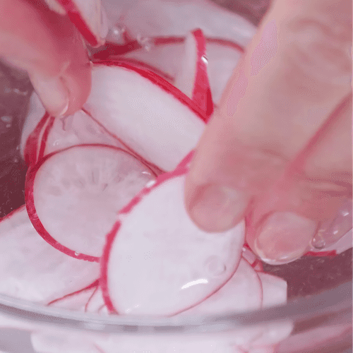 На 5 минут положить в холодную воду. Так он будет более хрустящим.