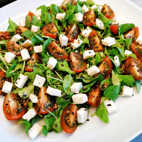 Южноевропейский салат с сыром бри — это изысканное сочетание свежести, пикантности и нежной кремовой текстуры. Его основой служит ароматная руккола, придающая легкую горчинку, которая гармонично сочетается со сладостью томатов черри. Заправка из оливкового масла, соевого соуса и зернистой дижонской горчицы добавляет салату выразительный вкус. Завершающим штрихом становится нежный бри, который тает на языке, а кунжутные семечки добавляют легкую хрустящую нотку. Этот салат идеально подходит как легкое блюдо для теплого летнего вечера, изысканная закуска или сопровождение к бокалу белого вина. Вдохновленный средиземноморскими мотивами, он приносит атмосферу уюта и гастрономического наслаждения.