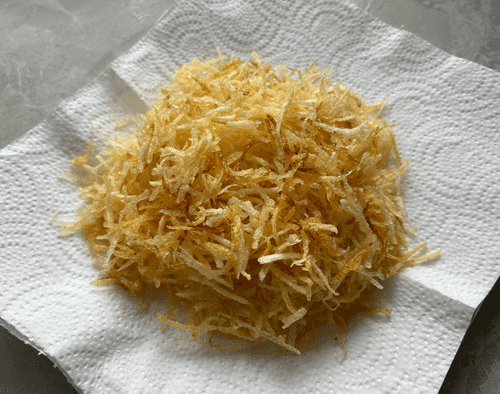 Выложить на бумажное полотенце, чтобы лишнее масло стекло.