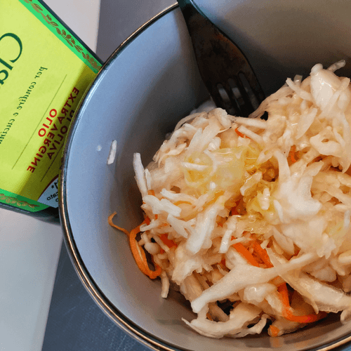 Салат из квашеной капусты с ягодами – это удивительное сочетание кислого и сладкого, хрустящего и нежного. Квашеная капуста, традиционный продукт славянской кухни, обогащена свежестью красной и черной смородины, которые придают ей неповторимую ягодную кислинку. Легкая заправка из оливкового масла и сумаха подчеркивает насыщенный вкус, а мелко нарезанный зеленый лук добавляет свежести. Этот салат – отличное дополнение к мясным и рыбным блюдам, а также самостоятельное легкое угощение. Он богат витаминами, улучшает пищеварение и освежает вкус. Идеальный выбор для тех, кто ценит баланс вкусов и оригинальность.