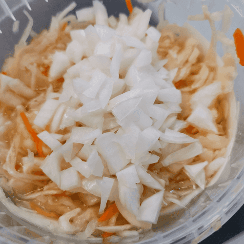 Лук и капусту объединить.