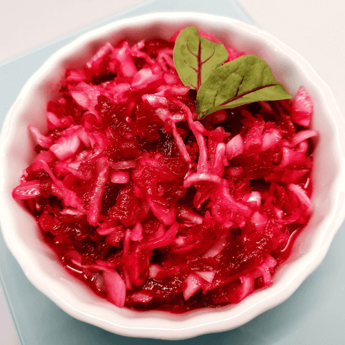 Салат из квашеной капусты со свеклой — это яркое сочетание свежести, кислинки и нежной сладости. Корни этого блюда уходят в традиции русской и восточноевропейской кухни, где квашеная капуста была не только способом сохранения урожая, но и источником полезных бактерий. Добавление вареной свеклы придает салату легкую сладость, смягчая его кислотность, а чеснок и лук добавляют пикантные нотки. Заправка из оливкового и горчичного масла раскрывает аромат и придает блюду насыщенность. Это идеальный гарнир к мясным и рыбным блюдам, а также прекрасный самостоятельный салат, который освежает и бодрит. Полезный, простой в приготовлении и восхитительно вкусный — этот салат станет незаменимой частью зимнего и весеннего рациона!