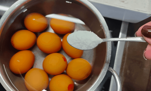 Яйца отварить вкрутую с добавлением соли (чтобы не лопнули).
