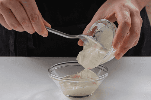В небольшом сотейнике вскипятить воду и ложкой положить в нее яйца. Варить 12 минут, затем залить холодной водой, чтобы остановить приготовление.