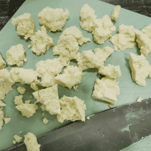 Наколоть или нарвать руками сыр на небольшие кусочки.