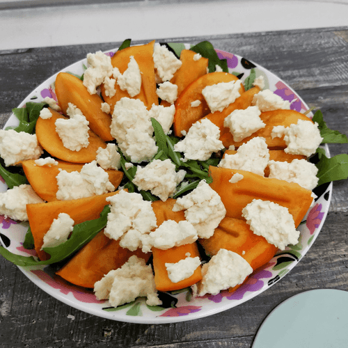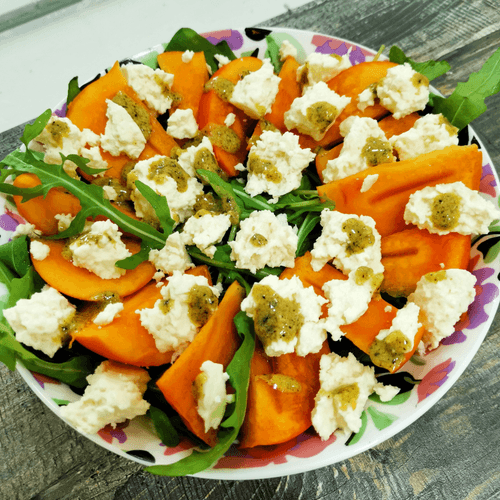 Салат с хурмой и рикоттой — изысканное блюдо итальянской кухни, которое поражает балансом вкусов и текстур. Нежная рукола добавляет свежесть, сладкая хурма привносит фруктовые нотки, а мягкая рикотта соединяет все ингредиенты в гармоничное сочетание. Заправка из оливкового масла, лимонного сока и дижонской горчицы придает блюду легкую пикантность и подчеркивает его вкусовые нюансы. Этот салат идеально подходит как легкая закуска или гарнир к основным блюдам, особенно в осенний и зимний сезон, когда хурма в самом расцвете. Элегантный, но простой в приготовлении, он станет украшением любого праздничного стола или повседневного рациона, привнося нотку средиземноморского шарма в вашу трапезу.