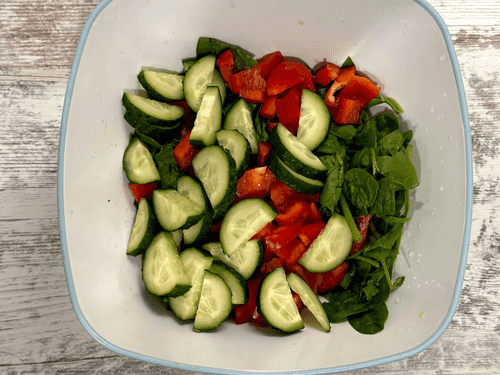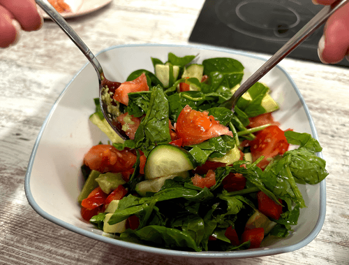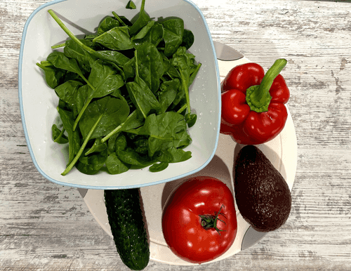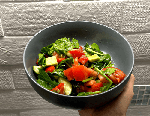 Салат из шпината с овощами и авокадо с медовой заправкой