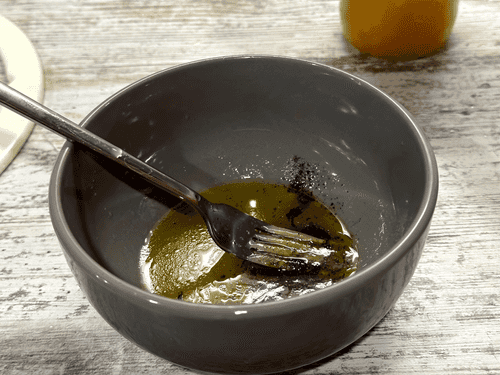 Для заправки приготовить масло, мед, лимон и небольшую пиалу или стакан.