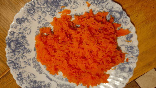 На мелкой терке натереть морковь.