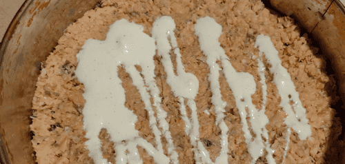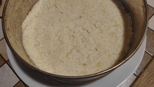 Распределить ровно по всей поверхности и утрамбовать ложкой.