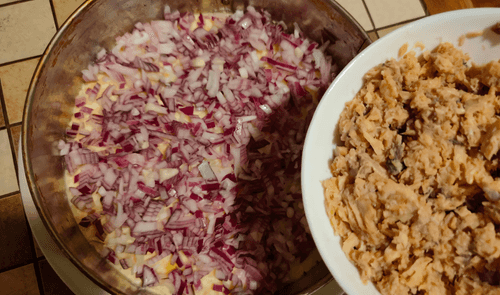 Так же, как и морковь, смешать его с 2 столовыми ложками майонеза и тщательно перемешать.