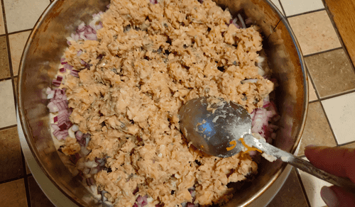 Далее высыпать рыбу.
