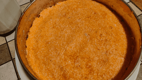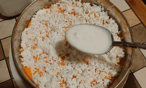 Теперь распределить и разровнять морковь, смешанную заранее с майонезом.
