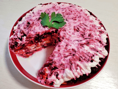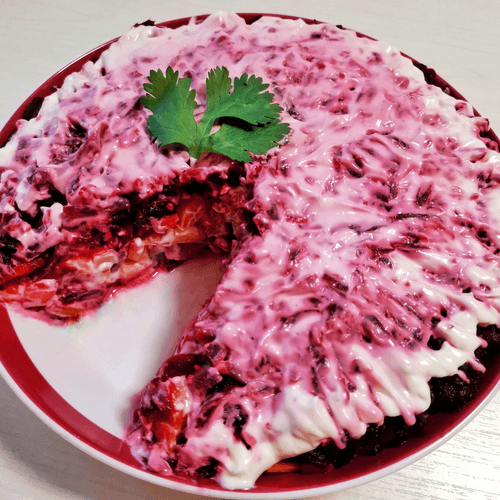 Селедка под шубой — культовое блюдо русской кухни, сочетающее нежную соленую сельдь, сладковатую свеклу и мягкость картофеля и моркови. Появилось оно в начале XX века, а название намекает на «укутанность» рыбы слоями овощей. Слегка пикантный вкус майонеза гармонично связывает все компоненты, создавая неповторимое сочетание соленого, сладкого и кремового. Блюдо идеально подходит для праздничного застолья, особенно на Новый год, когда его яркий цвет становится символом торжества. Селедка под шубой пропитывается и становится насыщенной, раскрывая всю глубину вкусов. Оно подается охлажденным и нарезается как торт, что делает его удобным для сервировки и наслаждения в компании. Это не просто салат, а настоящее произведение гастрономического искусства, которое объединяет традиции и вкус.