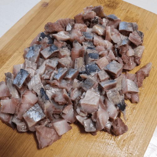 Первым слоем в глубокую тарелку выложить кусочки сельди.
