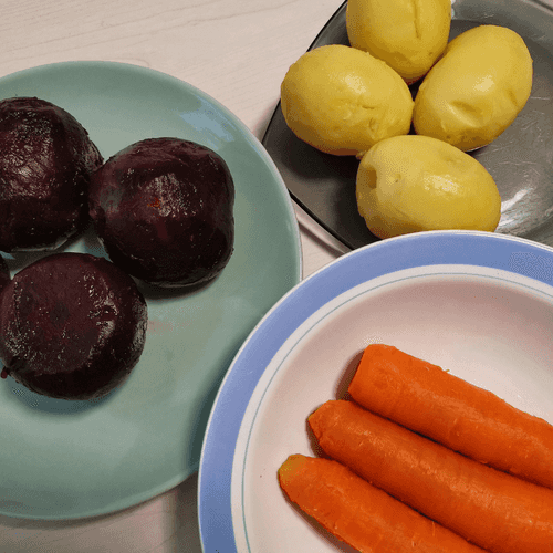 Морковь варить 20 минут, картофель — 30 минут, свеклу — 40 минут.