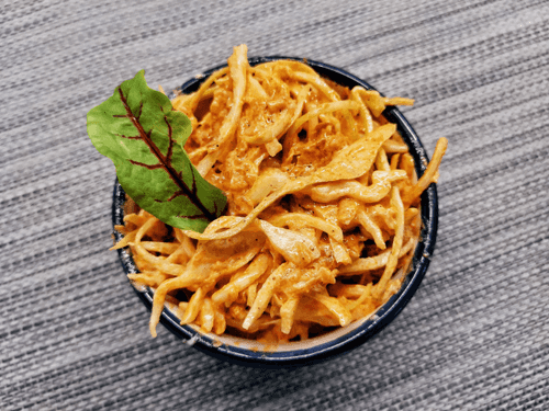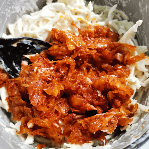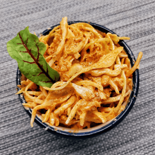 Коулсло с кабачком — это оригинальная интерпретация классического американского капустного салата, обогащенная нежным вкусом жареных кабачков. Его корни уходят в традиционную американскую кухню, где коулсло давно стал универсальным гарниром к мясным блюдам и барбекю. В этом варианте сладковатый, пряный соус на основе сметаны, майонеза и горчицы идеально сочетается с хрустящей молодой капустой и мягкими обжаренными овощами, создавая гармонию текстур и вкусов. Легкая пикантность соуса чили и томатной пасты добавляет нотки яркости, делая этот салат идеальным дополнением к блюдам из гриля или легким самостоятельным угощением. Подается охлажденным, позволяя ингредиентам раскрыть свой вкус и аромат во всей красе.