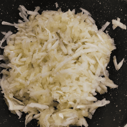 Кабачок натереть на крупной терке и добавить его в масло.