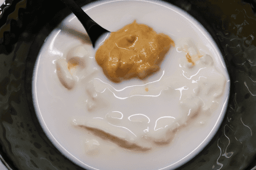 Для соуса перелить в глубокую емкость йогурт и добавить майонез.