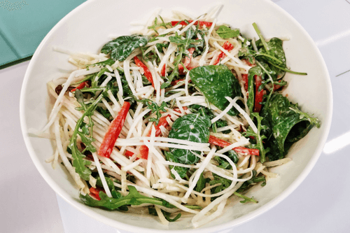Салат из кольраби — это легкое, освежающее блюдо, которое воплощает в себе простоту и элегантность русской кухни. Кольраби, обладающая нежным сладковатым вкусом, гармонично сочетается с миксом зелени — рукколой, шпинатом и мангольдом, придавая салату насыщенность и текстурное разнообразие. Перец рамиро добавляет сочность и легкую сладость, а пикантная заправка на основе греческого йогурта, майонеза и двух видов горчицы — зернистой и дижонской — придаёт блюду деликатную остроту. Нотки чеснока и яблочного уксуса подчеркивают глубину вкуса, делая салат универсальным дополнением к мясным и рыбным блюдам. Это прекрасный выбор для летнего обеда или легкого ужина, сочетающий в себе свежесть, питательность и утонченную гастрономическую палитру.