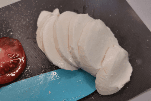 Нарезать слайсами моцареллу.