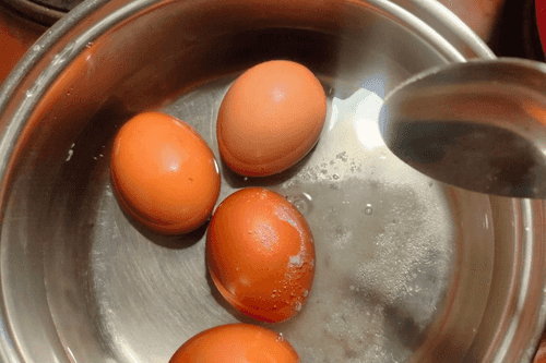 Яйца сварить (при варке добавить половину ложки соли, чтобы яйца не лопнули).