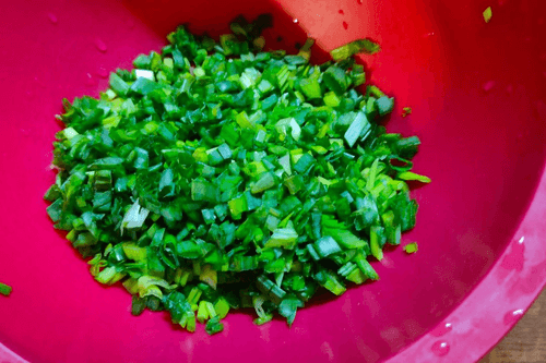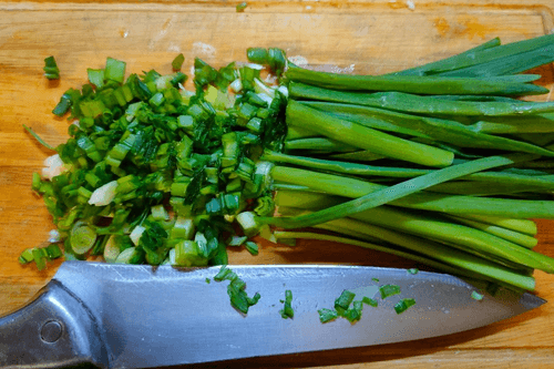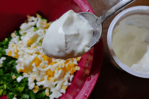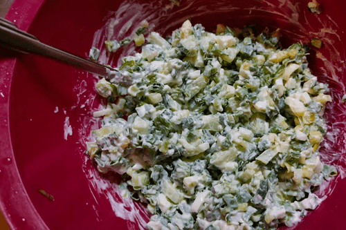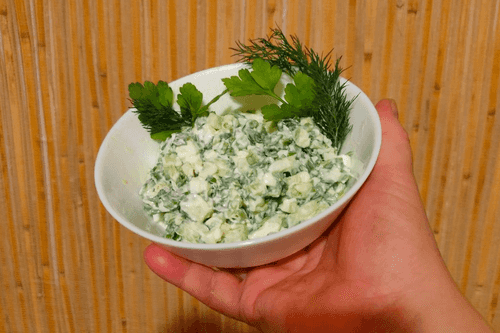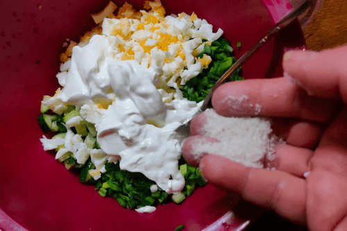 Салат из зеленого лука с огурцом, яйцом и сметаной