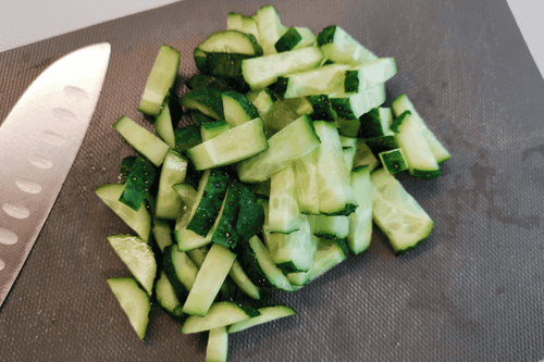 Соломкой нарезать огурцы.