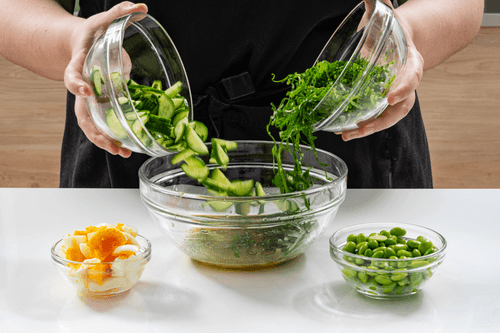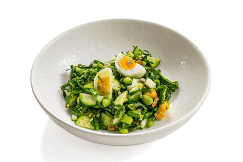 Салат с черемшой — весеннее угощение, наполненное свежестью и легкостью. Черемша, известная как дикий чеснок, придаёт блюду пикантную нотку, а свежие огурцы добавляют сочность и хрустящую текстуру. Нежные кусочки варёного яйца гармонично сочетаются с мягкостью эдамамэ, а жареные семечки подсолнуха вносят приятный ореховый оттенок. Заправка из дижонской горчицы и яблочного уксуса обогащает вкус, создавая баланс между кислинкой и остротой. Это блюдо отлично подходит для весеннего обновления рациона, насыщая организм витаминами. Исторически черемша ценилась за свои полезные свойства и использовалась в народной медицине. Салат идеален как самостоятельное лёгкое блюдо или гарнир к мясу, прекрасно дополняя пикники и домашние ужины.