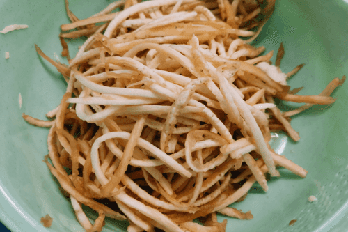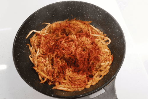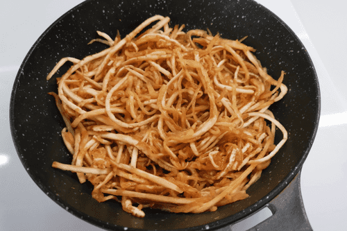 В разогретое на сковороде масло выложить баклажан. Обжаривать 2–3 минуты на сильном огне.