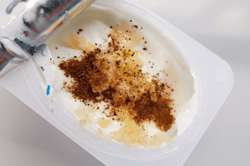 Выдавить чеснок в греческий йогурт при помощи пресса. Добавить черный перец и перемешать.