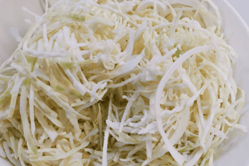 Капусту тонко нашинковать.