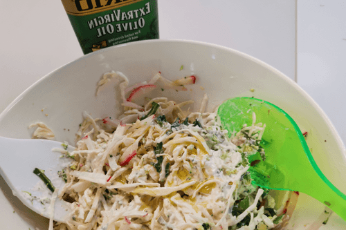 Заправить оливковым маслом.