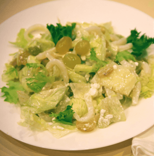 Салат из кальмаров с сыром фета и виноградом