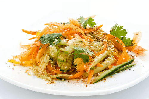 Салат из сельдерея с морковью — простое, но изысканное блюдо, родом из советской кухни, когда хозяйки искали лёгкие и доступные рецепты с полезными продуктами. Его освежающий вкус рождается из гармоничного сочетания сладковатой моркови и пикантного сельдерея, который придаёт легкую остроту и насыщенный аромат. Майонез добавляет нежность, связывая ингредиенты в единое целое, а петрушка завершает композицию свежестью. Этот салат идеально подходит в качестве лёгкого перекуса или дополнения к основным блюдам, особенно к мясу или рыбе. Он насыщен витаминами и прекрасно освежает в летнюю жару, оставаясь популярным на столах даже спустя десятилетия.
