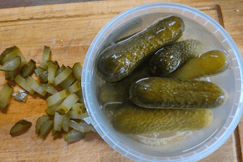 - Соленые огурцы: 4 штуки