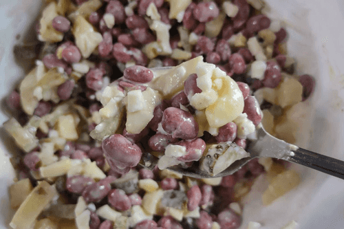 Сложить в миску с фасолью.