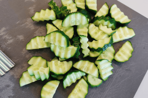 Огурцы нарезать дольками.