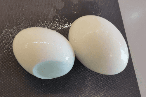 Яйца отварить вкрутую, затем охладить под проточной водой в течение 2–3 минут.