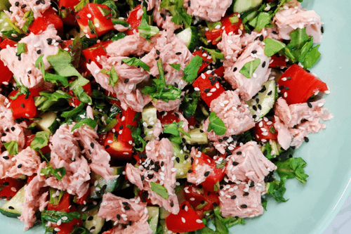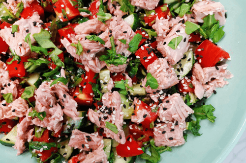 Салат из тунца — легкое и освежающее блюдо с изысканным вкусом. Его история уходит корнями в традиции средиземноморской кухни, но со временем он получил популярность и в русской гастрономии. Сочетание нежного тунца, хрустящих огурцов, сочных помидоров и пикантной руколы создаёт гармоничный баланс вкусов и текстур. Оливковое масло extra virgin придаёт салату благородный оттенок, а кунжут добавляет тонкие ореховые нотки. Этот салат отлично подходит как самостоятельное блюдо или как лёгкое дополнение к основному приёму пищи. Он станет идеальным выбором для летнего ужина или праздничного стола, радуя свежестью и насыщенностью натуральных ингредиентов.