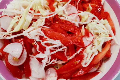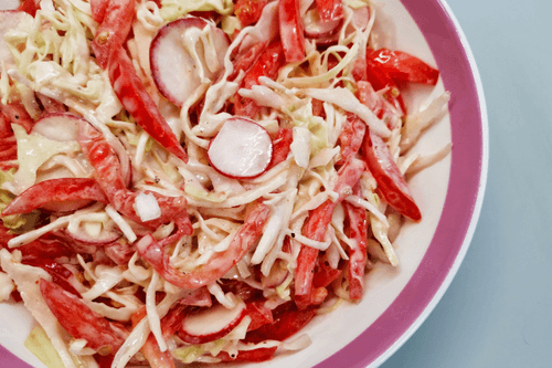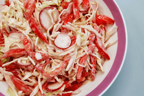 Коулсло по-кубански — это яркий и сочный салат, вдохновленный традициями русской кухни и кубанского региона. Он соединяет хрустящую белокочанную капусту, свежий редис и спелые помидоры в гармоничный ансамбль текстур и вкусов. Заправка с майонезом, дижонской горчицей, лимонным соком и пряностями придаёт салату пикантность и лёгкую остроту, делая его идеальным дополнением к мясным и рыбным блюдам. Этот салат можно подать как самостоятельное блюдо на обед или ужин, а также использовать в качестве гарнира на праздничном столе. Его свежий и немного пряный вкус подчёркивает натуральные ароматы овощей, создавая ощущение лёгкости и свежести. Коулсло по-кубански — это сочетание простоты и вкусовой изысканности, которое понравится любителям традиционных и ароматных салатов.