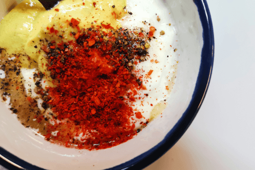 Добавить в соус хлопья чили. Тщательно перемешать.
