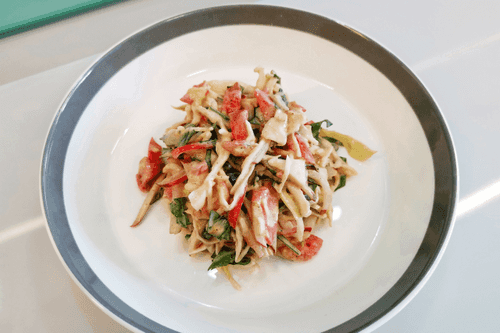 Выложить салат на блюдо и подавать.