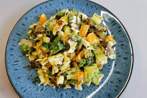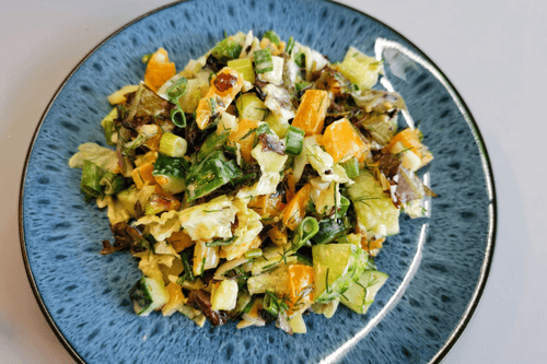 Этот салат с майонезно-горчичной заправкой – яркий представитель русской кухни, сочетающий свежесть овощей и пикантную глубину заправки. Его корни уходят в традиционные домашние рецепты, где натуральные ингредиенты формируют богатый вкус. Хрустящая пекинская капуста и огурцы создают основу, а сладкий перец и помидоры добавляют сочность. Ароматный базилик и укроп раскрывают свежие травяные нотки, а чеснок придаёт лёгкую пикантность. Ключевой акцент – соус, где мягкость майонеза гармонично сочетается с остротой дижонской горчицы и благородностью оливкового масла. Этот салат идеально подходит как лёгкое самостоятельное блюдо или дополнение к мясу и рыбе, а его насыщенный вкус делает его фаворитом на семейных и праздничных столах.