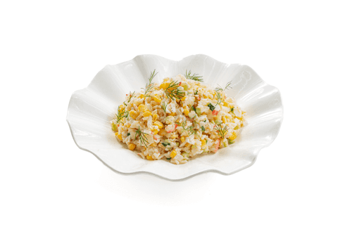 Крабовый салат с кукурузой – это классическое блюдо русской кухни, которое завоевало популярность благодаря своей легкости и нежному вкусу. Исторически этот салат появился в конце XX века, когда крабовые палочки стали доступными в магазинах. Сочетание мягких крабовых палочек, сладкой кукурузы, свежих огурцов и риса придает салату гармоничную текстуру. Маринованный лук добавляет легкую пикантность, а яйца придают насыщенность. Заправленный майонезом, салат становится нежным и сочным. Его часто подают на праздничный стол, так как он не только вкусный, но и яркий, радующий глаз. Это блюдо идеально сочетается с бокалом белого вина и свежими зелеными листьями салата.